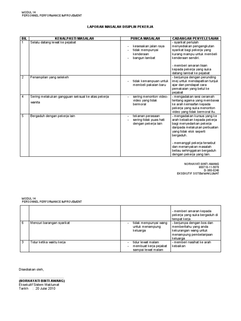 Laporan Masalah Disiplin Pekerja Pdf