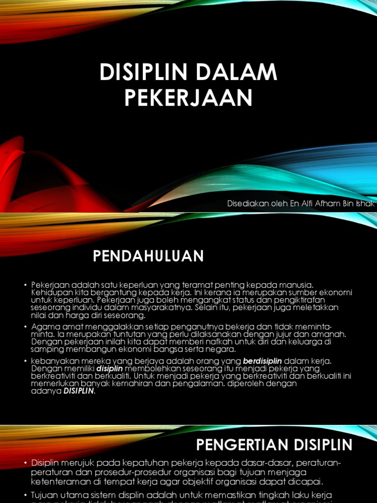 Faktor berlakunya isu disiplin pekerja masalah disiplin pekerja semakin meningkat disebabkan oleh beberapa faktor persekitaran yang berlaku di tempat kerja. -Sambil lewa dengan perwatakan sebagai seorang pekerja seperti rambut tak terurus dan baju yang kedut ketika sedang bekerja. Menghilangkan pekerja yang tidak efisien tujuan disiplin kerja dapat membantu perusahaan atau manajer untuk mengidentifikasi perilaku yang merugikan di tempat kerja.