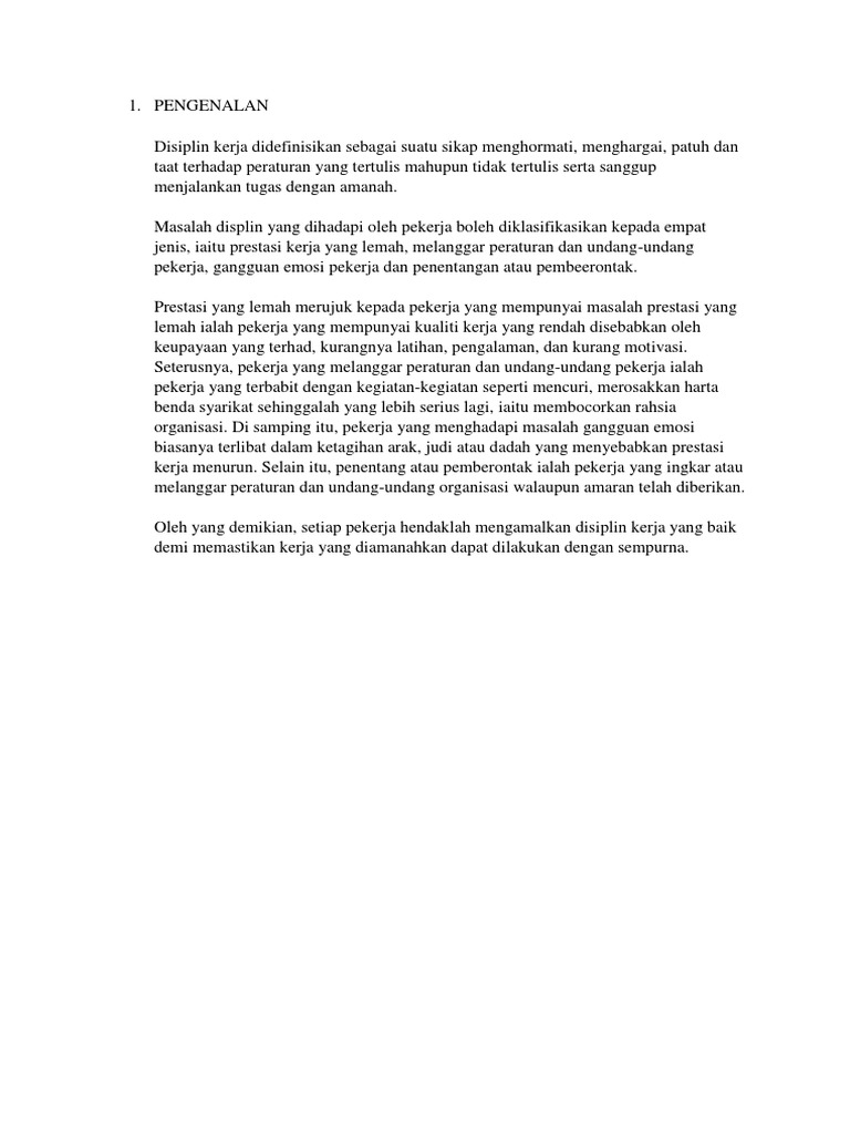 Kajian Kes Docx Kajian Kes Tentang Isu Pemasalahan Disiplin Pekerja 1 0 Pengenalan Pekerjaan Adalah Sesuatu Kerja Yang Dilakukan Dan Mendapat Course Hero